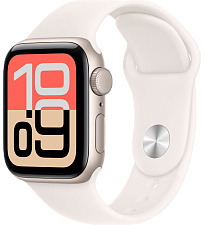 Apple Watch SE (2025), 40 мм, корпус из алюминия цвета «сияющая звезда», спортивный ремешок цвета «лёгкий румянец»
