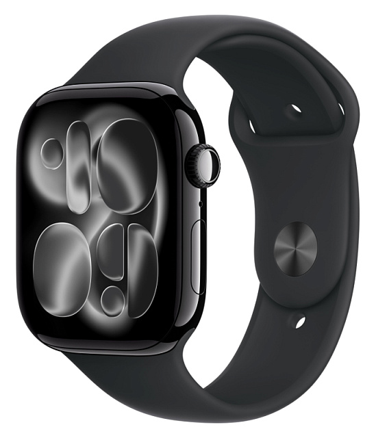 Apple Watch Series 11, 42 мм, корпус из алюминия цвета «чёрный глянец», спортивный ремешок чёрного цвета