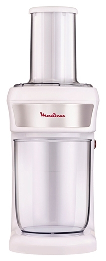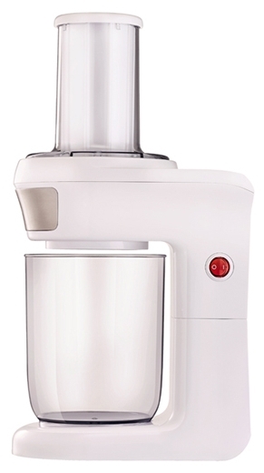 Измельчитель оснащен 4 насадками и контейнером объемом 0,8 литра с широким горлом.