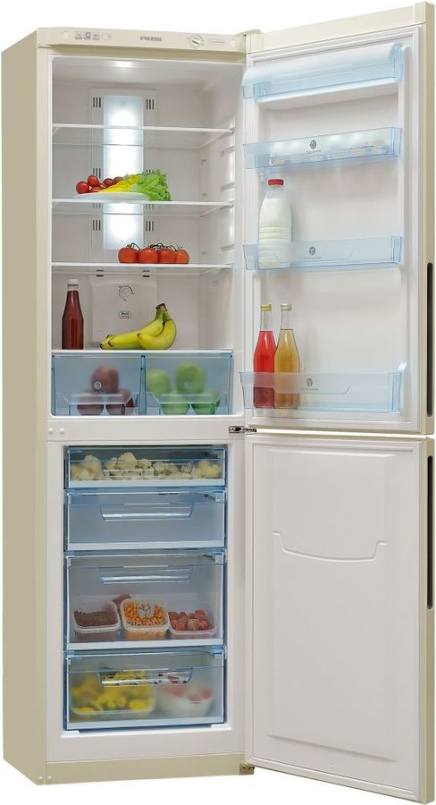 Продуманная система хранения с боковыми и основными ящиками, выдвижными ёмкостями позволяет удобно и компактно разместить все необходимые продукты.