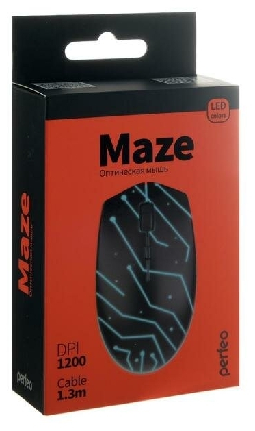 PERFEO MAZE – проводная мышь для работы с ноутбуком или стационарным компьютером. Симметричный корпус модели подходит для использования и правой, и левой рукой. Высокоточный сенсор устройства поддерживает разрешение 800 и 1200 dpi. Чтобы начать пользоваться мышью, необходимо вставить кабель PERFEO MAZE в свободный USB-разъём вашей техники. Устройство не требует установки дополнительного программного обеспечения.