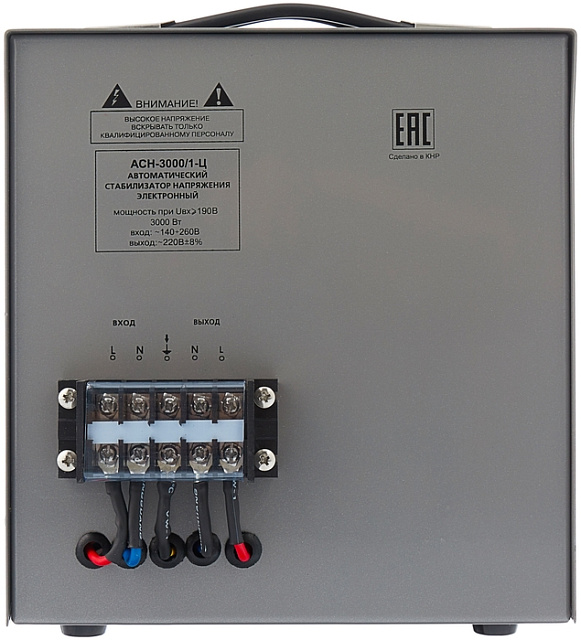 Мощность прибора составляет 3000 Вт. Этого более чем достаточно для стабилизации бытовой техники.
