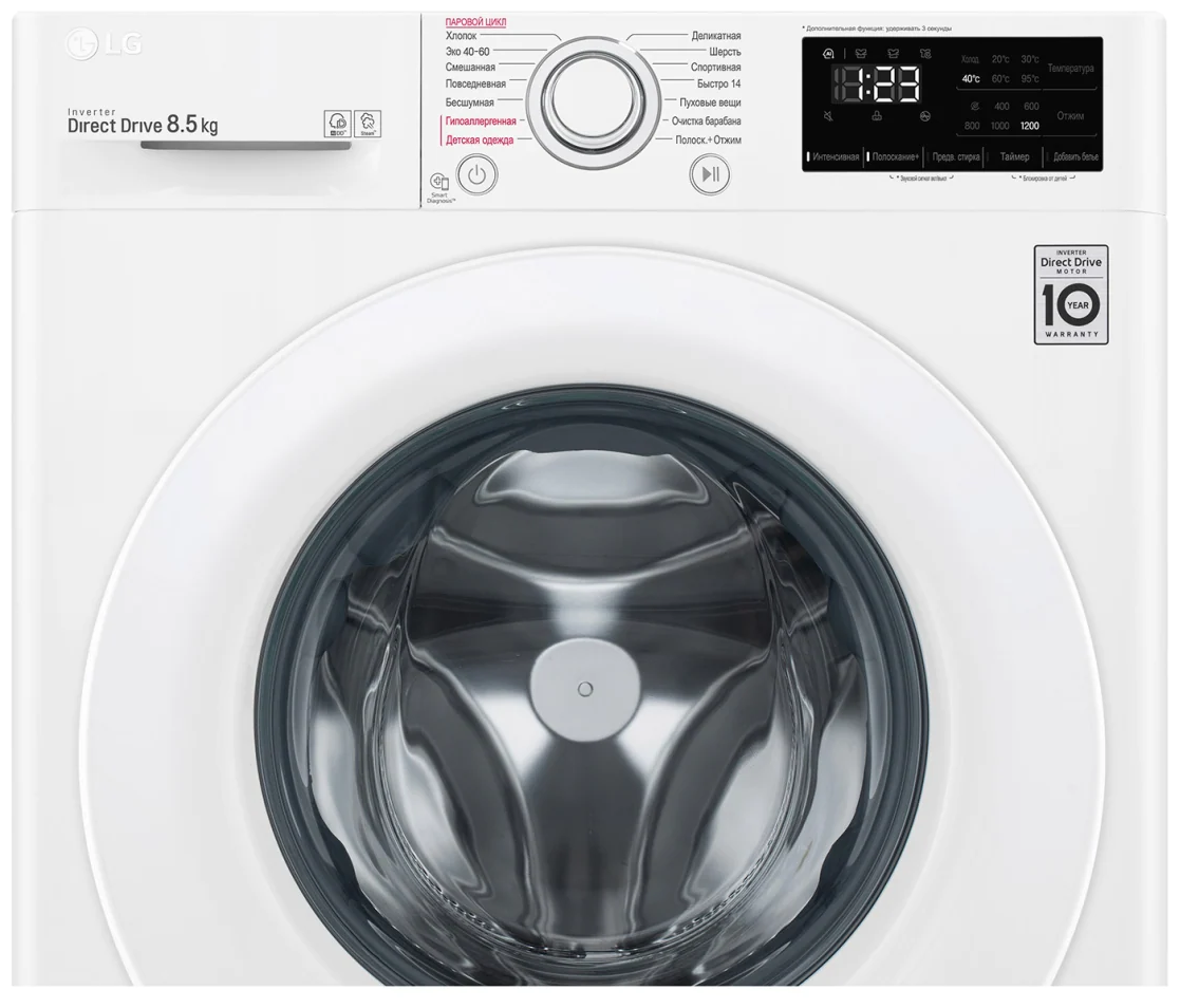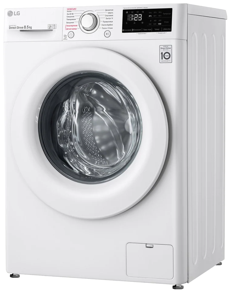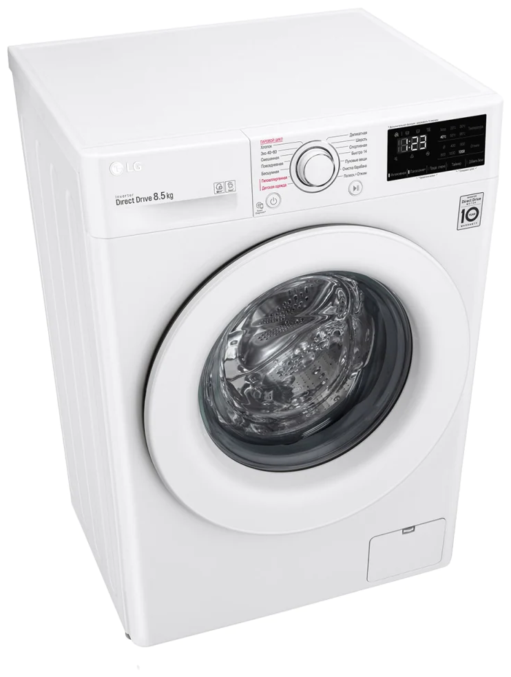 LG F2V3GS3W – узкая стиральная машина нового поколения, рассчитанная на загрузку белья до 8,5 кг.
