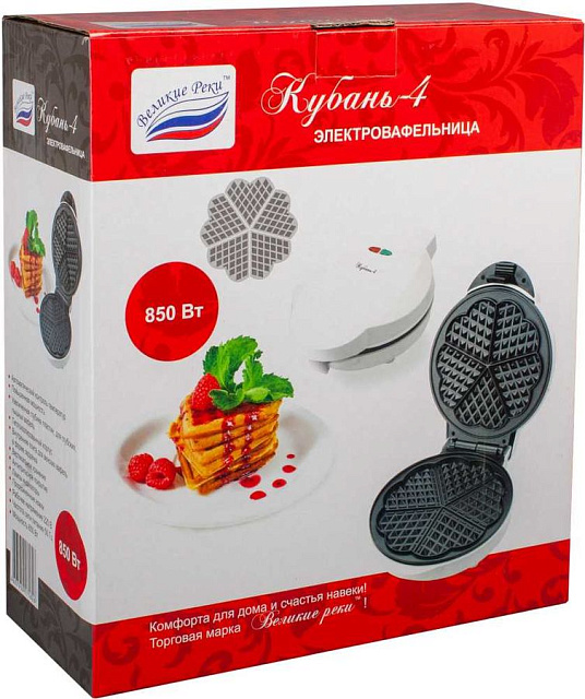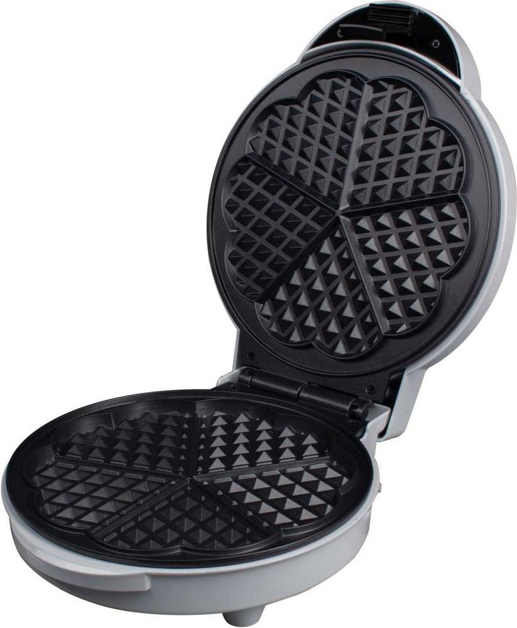 Эта вафельница мощностью 850 Вт имеет теплоизоляционный корпус и антипригарное покрытие – вафли можно готовить без масла и не боятся обжечься. За раз можно приготовить 5 вафель в форме сердечка, в руководстве по эксплуатации есть разные рецепты.