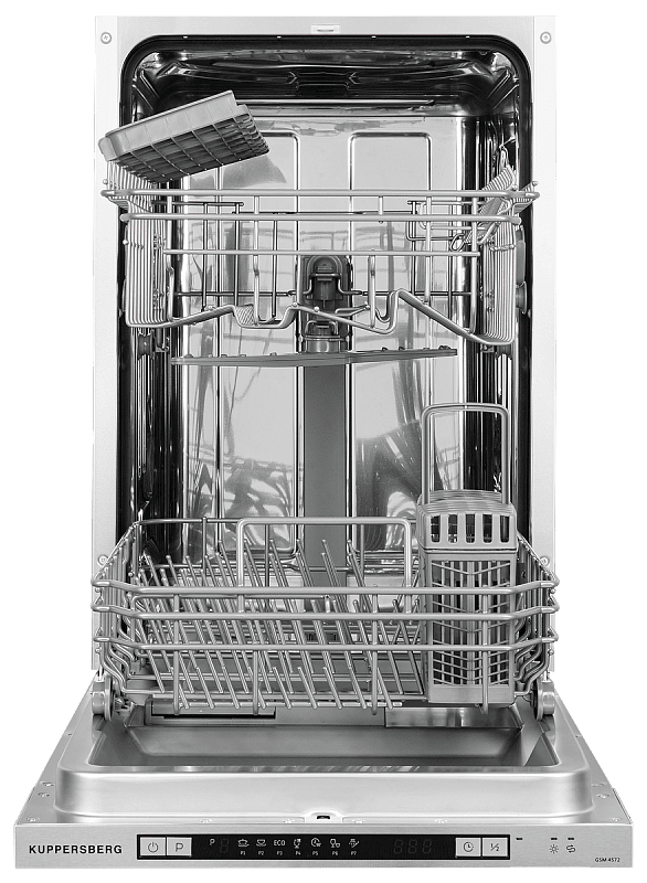 Компактная посудомоечная машина Kuppersberg GSM 4572 легко очистит любые загрязнения и сделает посуду чистой без разводов и следов.